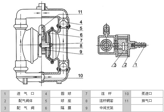 QBY-50氣動隔膜泵是為目前國內(nèi)最新穎的一種泵類,結(jié)構(gòu)簡單、拆修方便、送液穩(wěn)定、振動小、噪聲低、自吸能力強(qiáng)、輸送液體粘度高,具有自吸泵、潛水泵、屏蔽泵、泥漿泵和雜質(zhì)泵等輸送機(jī)械的許多優(yōu)點(diǎn)。采用壓縮空氣為動力源,對于各種腐蝕性液體,帶顆粒的液體,高粘度、易揮發(fā)、易燃、劇毒的液體,不易流動的液體均能予以抽光吸盡。其性能參數(shù)與聯(lián)邦德國的WLLDENPVMPS、美國的MARIOWPUMPS相近。已被國內(nèi)數(shù)萬家石油、化工、食品、醫(yī)藥、電子、陶瓷、紡織、釀造、造紙系統(tǒng)單位采用,安置在各種特殊場合,用來抽送種常規(guī)泵不能抽吸的介質(zhì),均取得了滿意的效果。