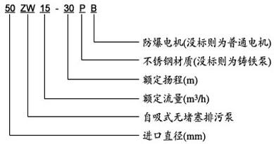 ZWPB不銹鋼防爆型自吸排污泵型號意義: