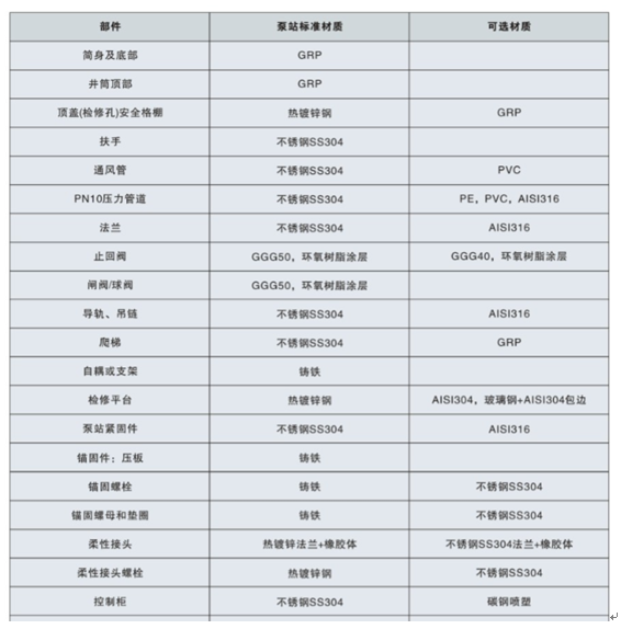 八、TPY一體化預(yù)制泵站材質(zhì)說明