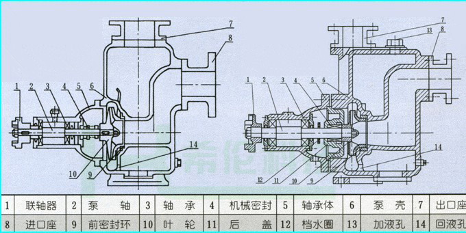 2、 該泵是選取用優(yōu)質(zhì)材料精制而成,密封采用硬質(zhì)合金機(jī)械密封,經(jīng)久耐用,吐出管路不需要安裝安全閥,吸入管路不需安裝底閥,因此簡化了管路系統(tǒng),又改善了勞動條件。