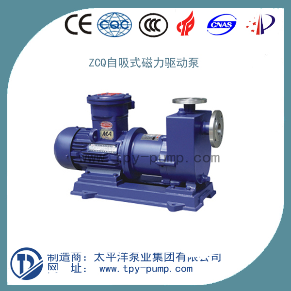 ZCQ型自吸式磁力泵(以下簡稱自吸泵)該泵以靜密封取代動(dòng)密封,使泵的過流部件處于完全密封狀態(tài),徹底解決了其它泵機(jī)械密封無法避免的跑、冒、滴、漏之弊病,泵體及過流部件的材料均采用了耐腐蝕的不銹鋼、鋼玉陶瓷、四氟石墨等材料制造,既有CQ型磁力驅(qū)動(dòng)泵的功能,又集皂吸于一身,不需底閥和引灌水,自吸高度4米。